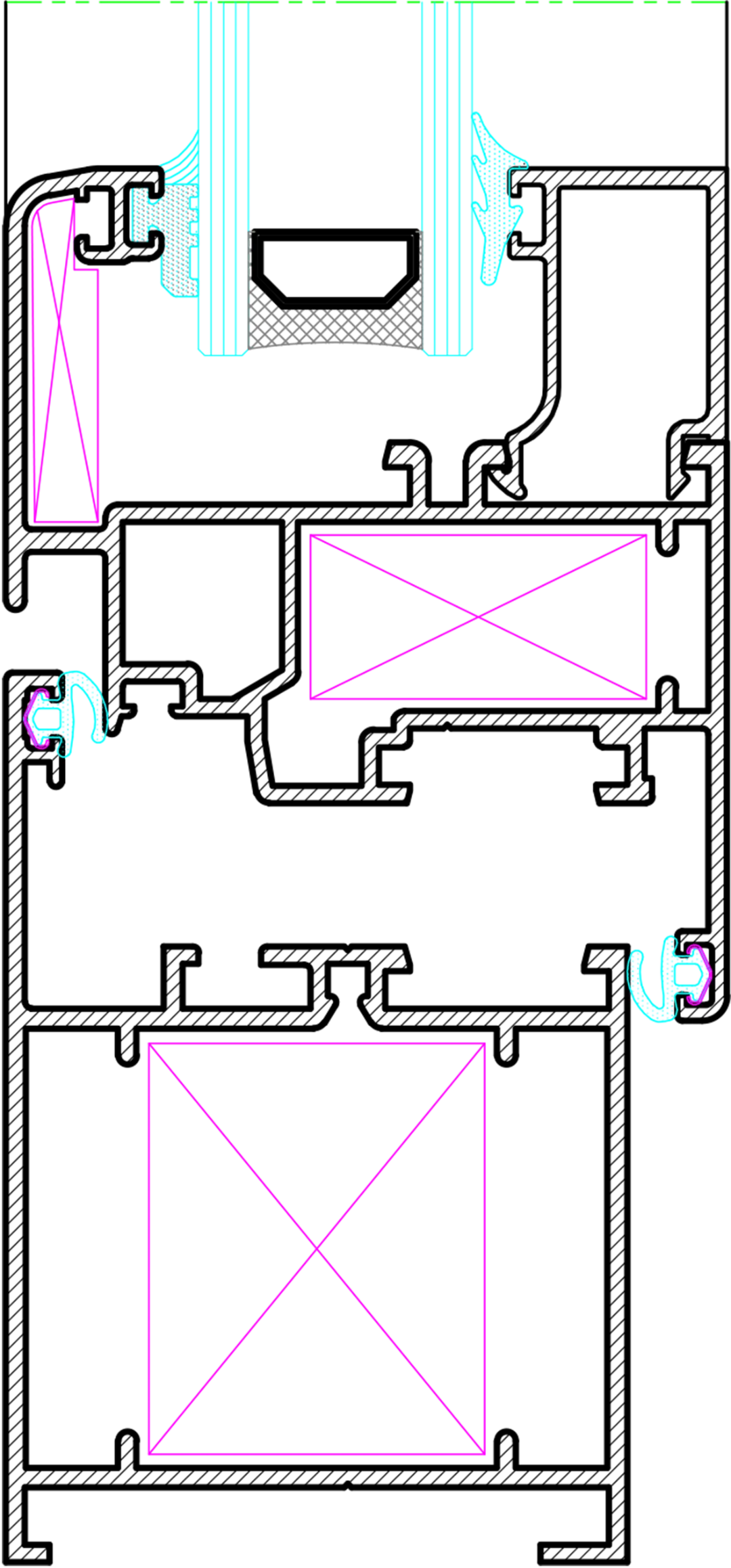 PE85tt is a system for windows and doors with a thermal break, intended for the manufacture of windows, doors, and fixed glazed walls. The basic installation depth of the frame is 77 mm or 85 mm. The thermal break is achieved using glass-fiber-reinforced polyamides with a width of 31.6 mm.