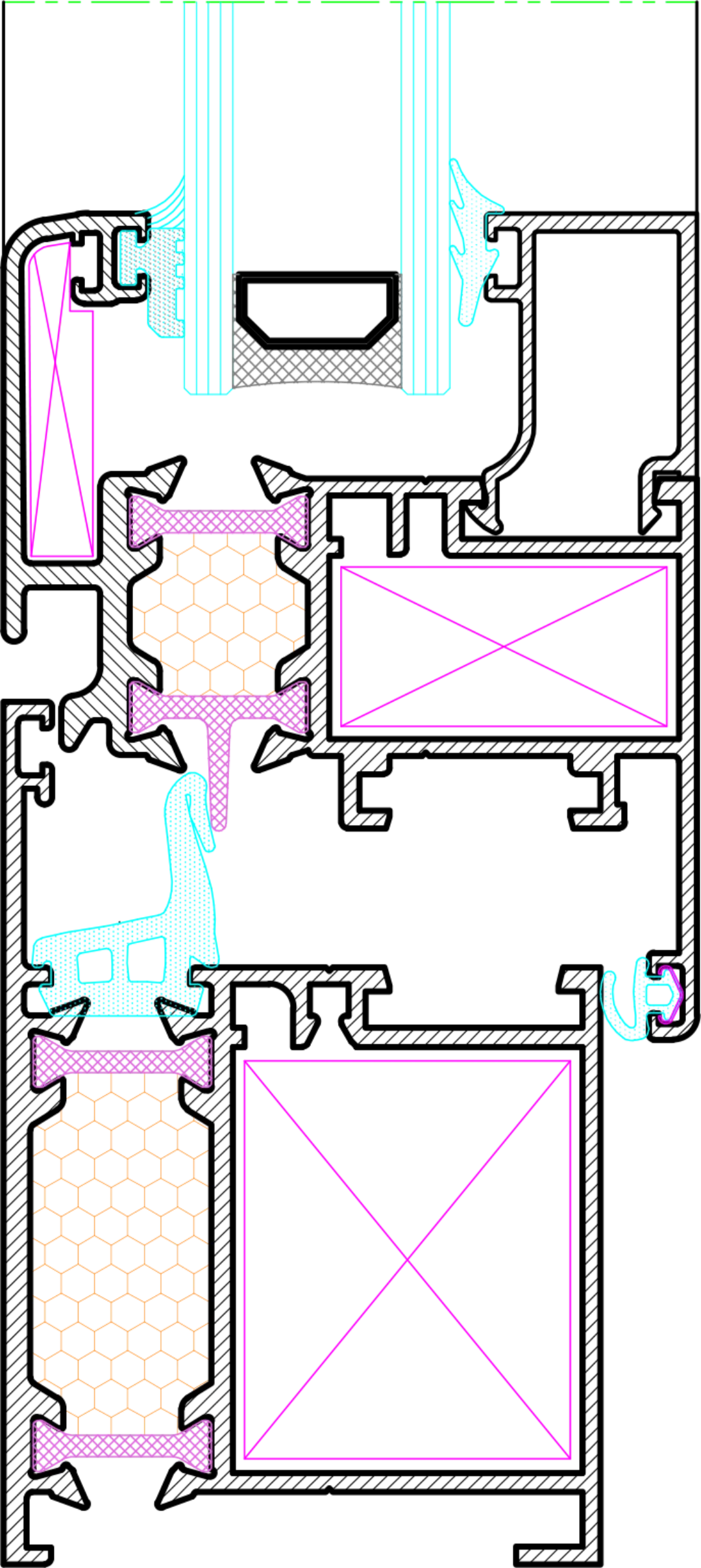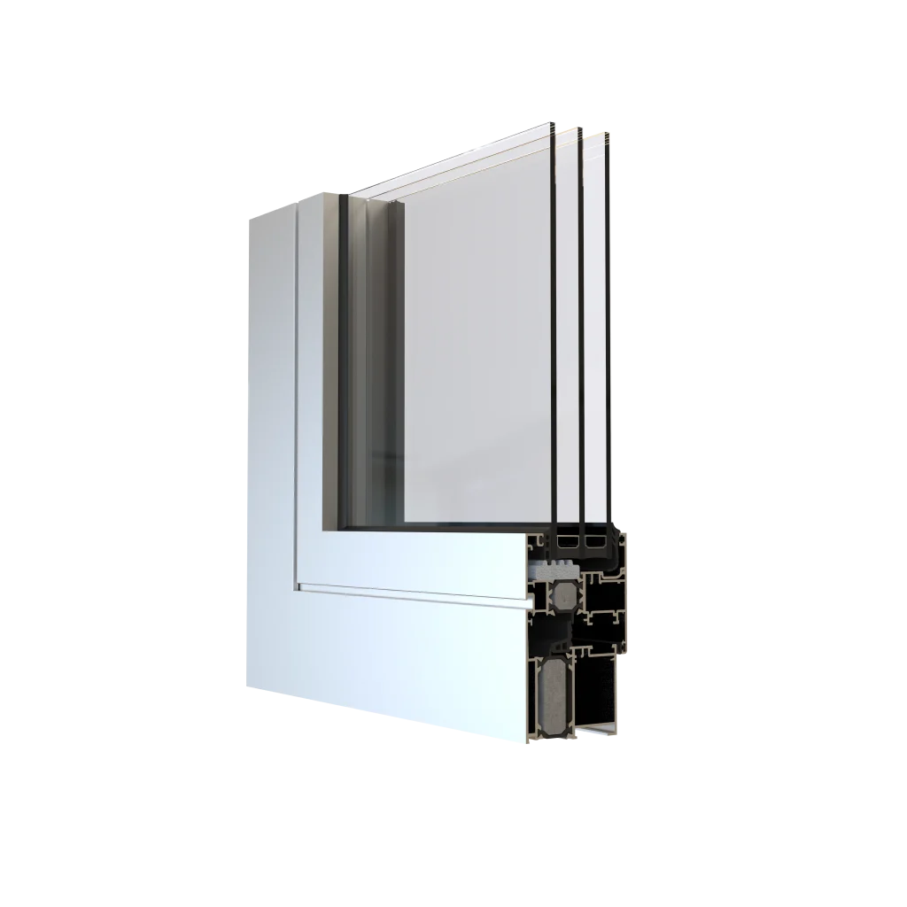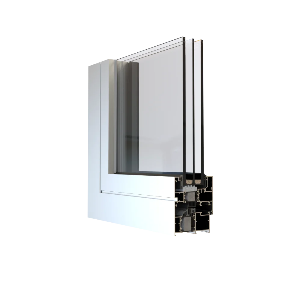 Systems with a broken thermal bridge prevent direct heat conduction between the inner and outer side of the profile. This results in reduced heat loss through the glass and frame, thereby improving the energy efficiency of the space.